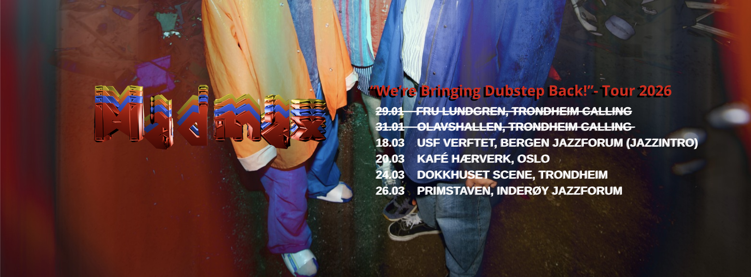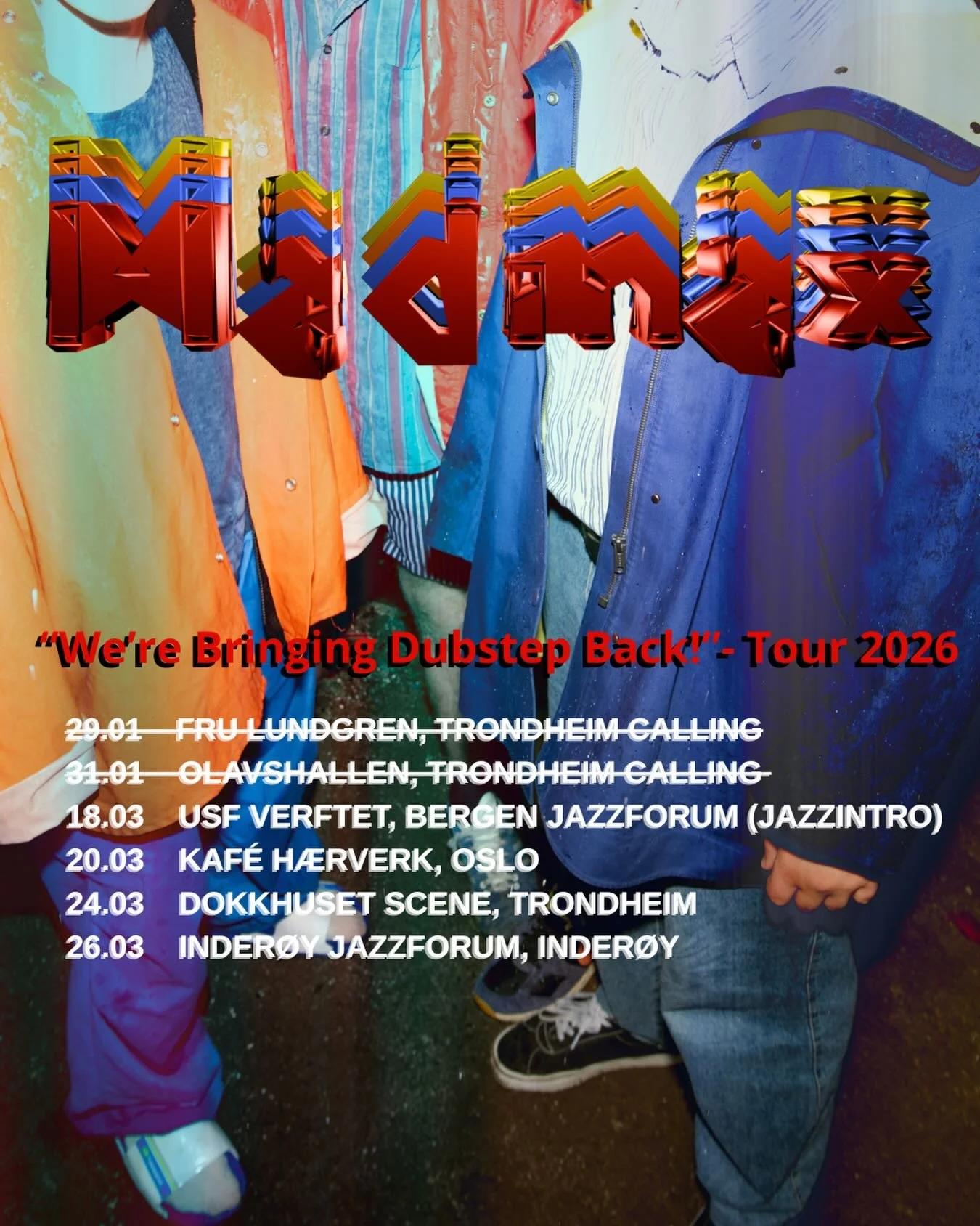 The band was formed in 2022 and has since played concerts at Trondheim Calling, Oslo Jazz Festival, Dokkhuset Scene and Salt, among others. In the summer of 2024, they had their international debut during a work stay at La Maison Matrice in Switzerland. Here they wrote much of the music that will appear on their first album: “We’re bringing dubstep back!”. The album was recorded in Studio Paradiso with Martin Tonne (Pom Poko) as producer, and will be released on Jazzland Recordings on March 20, 2026. The band released “u stole my guitar :(“, the first single from the album, on January 29. In the spring of 2026, they will play as one of eight bands in the prestigious program Jazzintro, and embark on a Norwegian tour to promote their debut album.