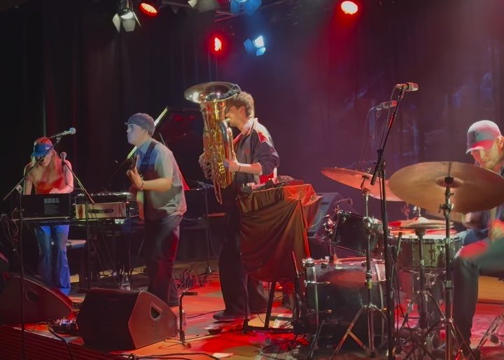 Madmax is a forward-leaning band started by four friends at “jazzlinja” in Trondheim. With the exotic line-up of tuba, synth, vocals, guitar, and drums, and a rather nonchalant attitude towards genre boundaries, the band plays fearless music that is perfect for both unrestrained dancing and contemplation. Described as everything from “experimental and dynamic bonkers-rock”, “jazzy and artistic math rock with tuba” (GAFFA.no), to “psychedelic pop” (Audun Vinger, Jazzinorge) and “surrealistic” (Radio Revolt), Madmax is a live-experience a little out of the ordinary.